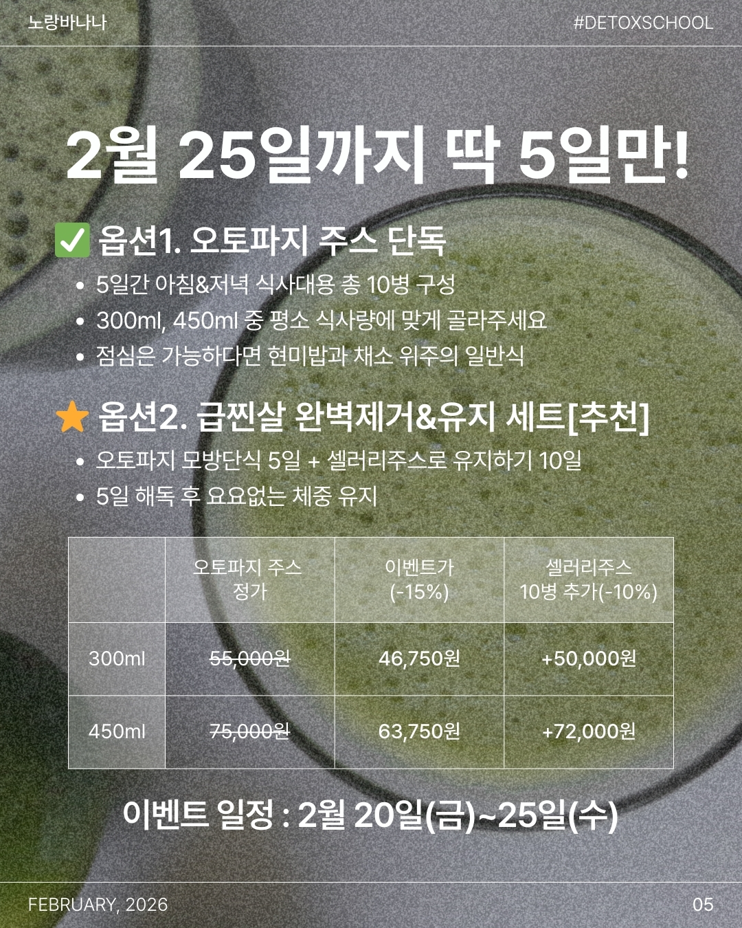 혜택: 오토파지 주스 15% 할인 + 셀러리 주스 추가 시 10% 혜택까지!
