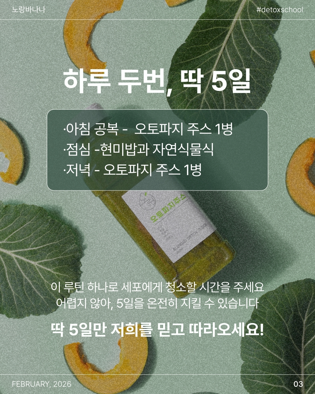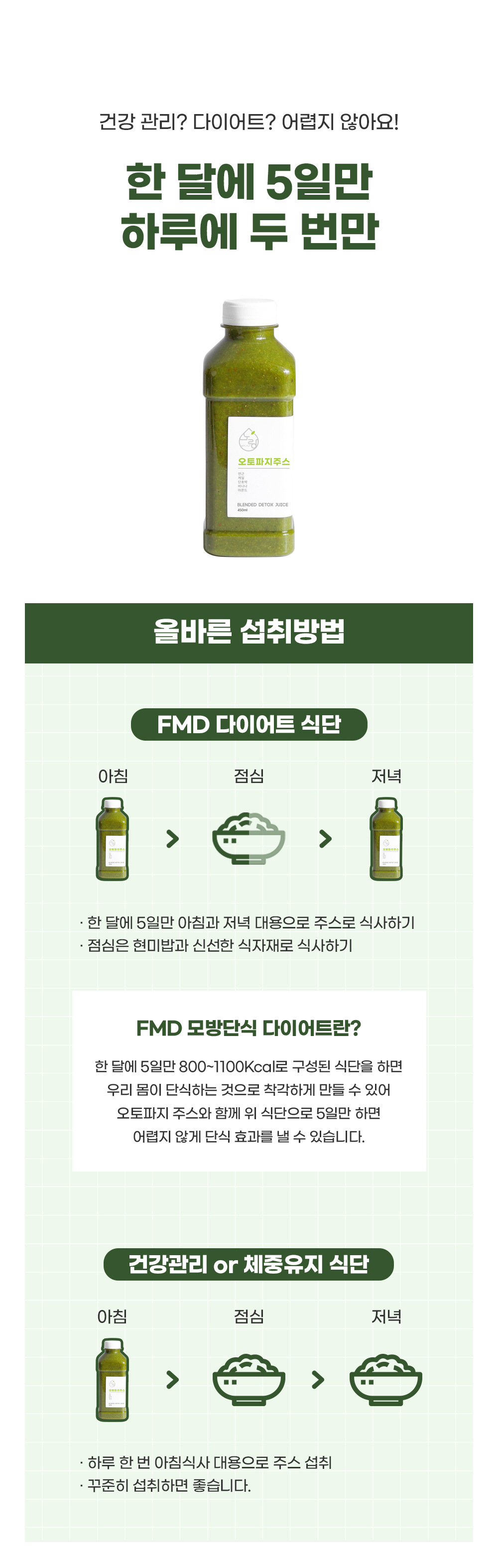 1. 5일간 아침&저녁 식사대신 오토파지 주스를 드세요