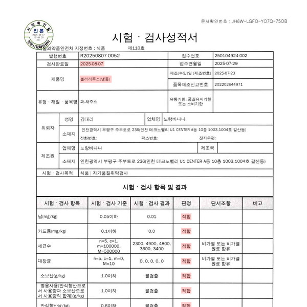 노랑바나나는 HACCP 인증업체로 위생적인 환경에서 직접 제조합니다