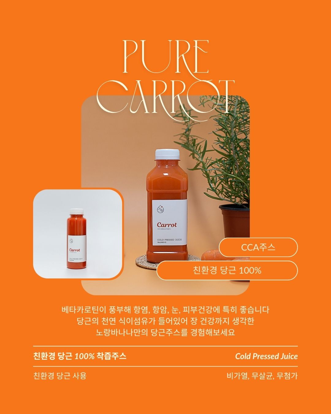 전성분 : 유기농/무농약 당근(국내산0 100% 착즙주스 + 당근식이섬유)